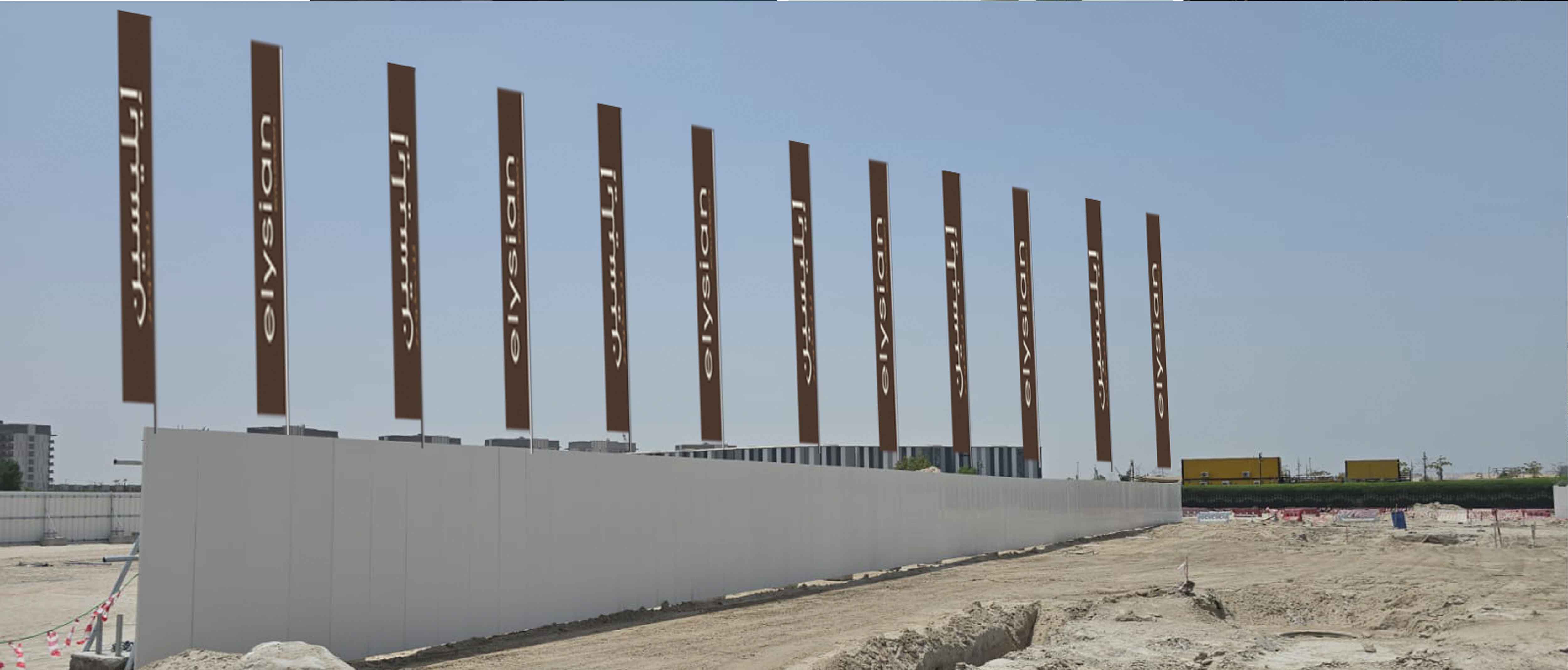 Our team managed the complete production journey from artwork preparation and large-format printing through to on-site installation across multiple locations. The hoardings featured the Elysian brand identity at monumental scale, with bilingual English and Arabic execution to serve the full target audience. All materials were produced to premium outdoor-grade specification for durability and visual quality.